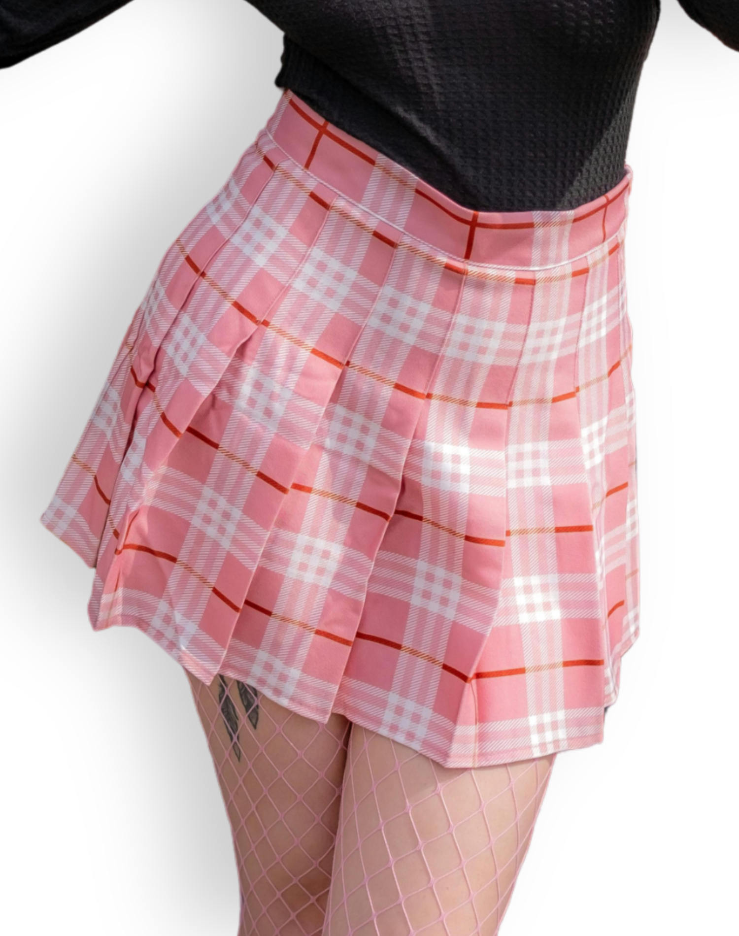 Sweet with a rebellious edge, this cotton candy plaid mini skirt brings major Y2K energy to any outfit. The structured pleats and high-waisted cut flatter every curve, while the pink-and-white pattern adds a playful pop that pairs perfectly with crop tops or oversized knits. It’s flirty, bold, and effortlessly cool.