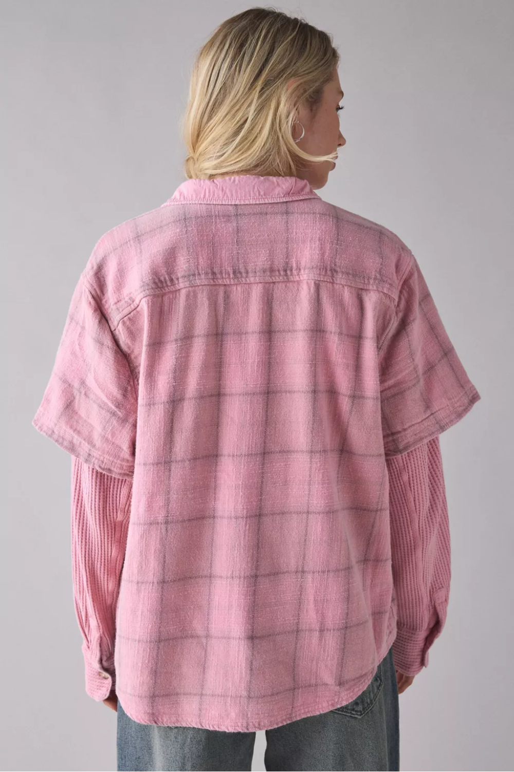 Pink Oversized Layered Flannel Shirt